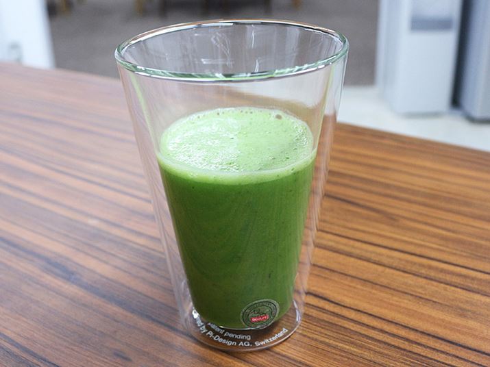 1回目に比べてムラもなくスムージーらしい見た目だが、繊維ごとスムージーになった感はなく、バナナのおかげでとろみはあるものの、ジュースとあまり変わらない飲み心地