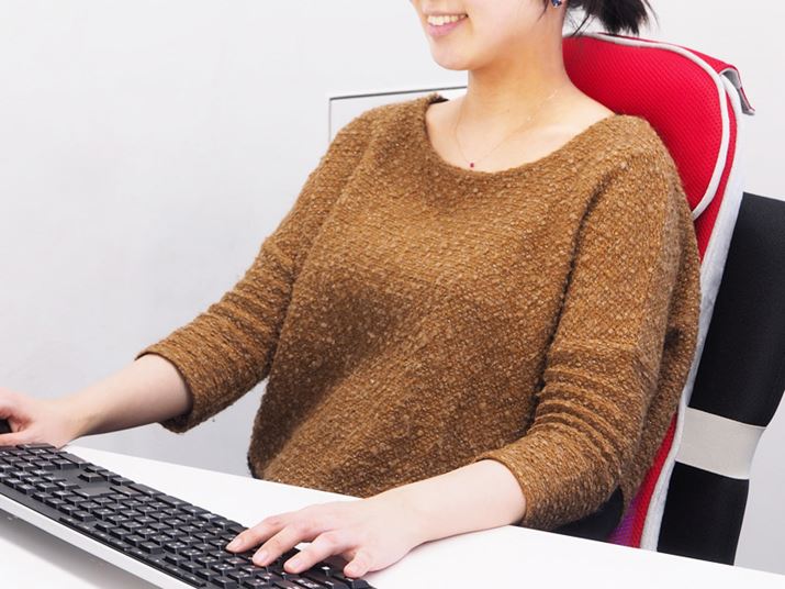 イスに座って、ゆったりと体を預けると、もみ玉がぐいぐいと背中を押してくれます。かなり力強くて気持ちいい! もみ玉が平面での回転だけでなく、立体的な縦(前面)回転をすることで指圧を再現しているそう。リクライニングの角度が少ないイスの場合は自分からシートに体を押し付ける感じで座ると、より効果を感じやすいです。