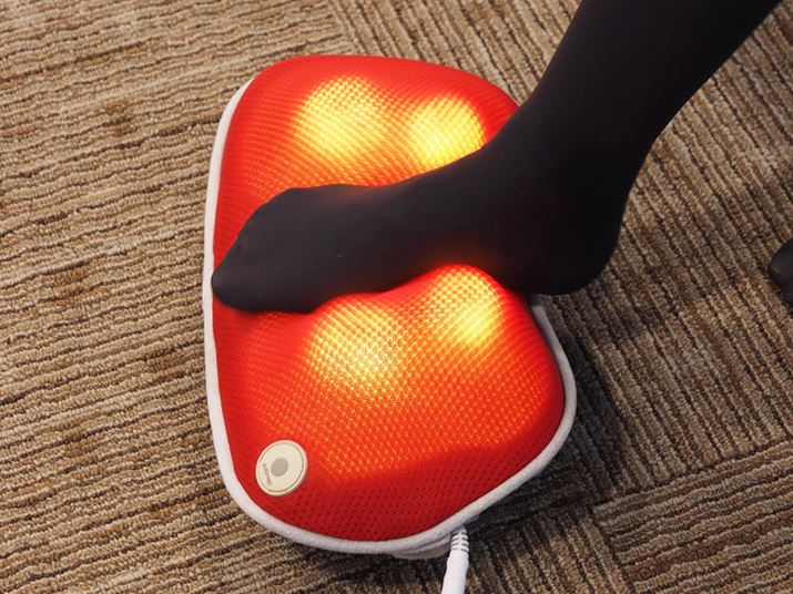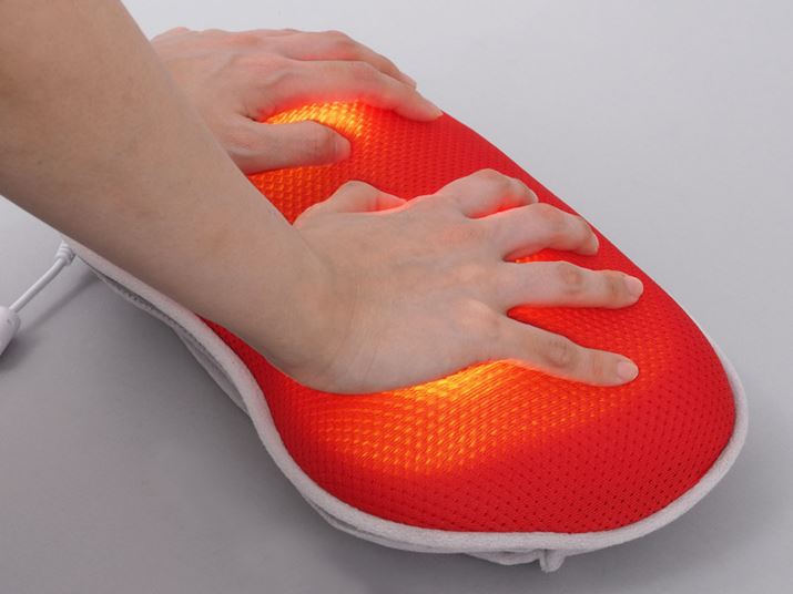 足や腕は4つのもみ玉の間に入れてもよし、左右のもみ玉にのせるのもありで、使い勝手のよさはちょっと感動モノ。マッサージしている間にLEDの温かさがほんのり伝わってきて、それがまた気持ちいい!