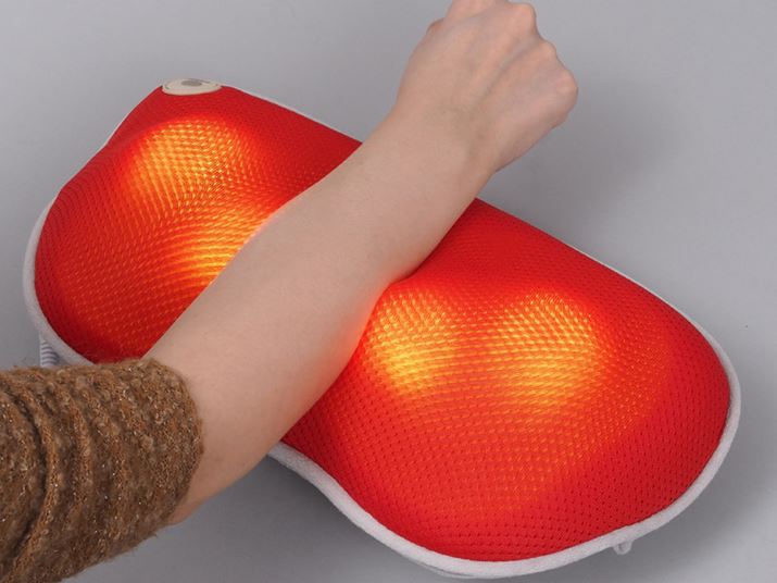 3Dマッサージピローは、手、腕、足、ふくらはぎ、太もも、腰など、あらゆる部位への使用が可能。もみ玉の上の部分が平らになっているからか、3Dマッサージシートよりもやさしい刺激です。動作音がほとんどしないのもうれしいポイント。