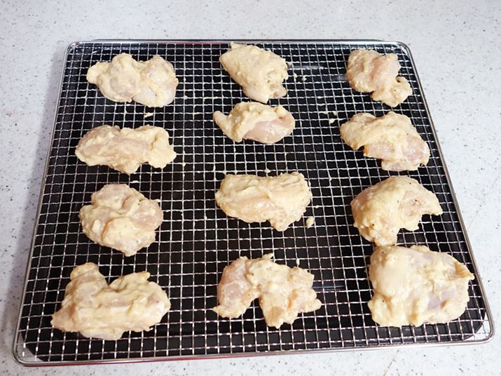 みりんとしょう油を使うレシピのためか、唐揚げと比較すると焼きむらがある。しかし食べてみると「から揚げ」そのもの! 特に皮の近くはパリパリしていておいしい