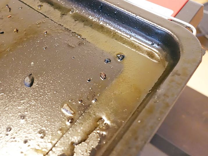 油を一切使わなかったにも関わらず、調理後には大量の脂が天板に落ちていた。油分を最大85%カットというのもうなずける