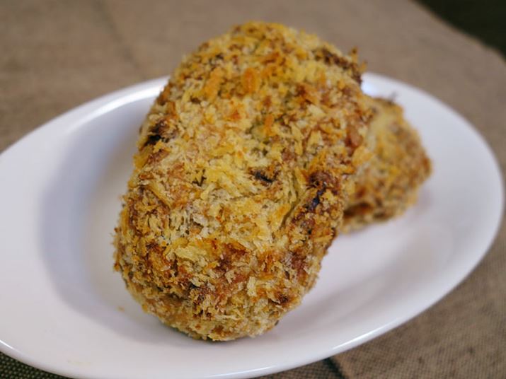 ノンオイルだと色がつきにくい「パン粉の衣」だが、きちんと焼き色が付いているのがわかる。食べるとサクサクと音がするほどクリスピーだ