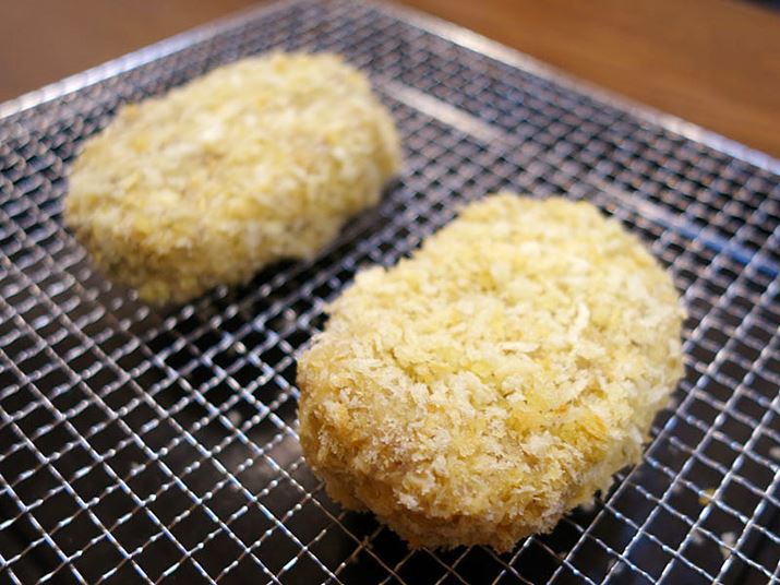 もちろん、から揚げだけでなく、パン粉をつける揚げ物調理も可能。“揚げ物ができる”とうたっているオーブンでは、揚げ色がきれいにつかない製品もあるのだが、「シロカ」で調理したコロッケはパン粉にこんがりと焼き色が付き、見た目にもおいしそう!
