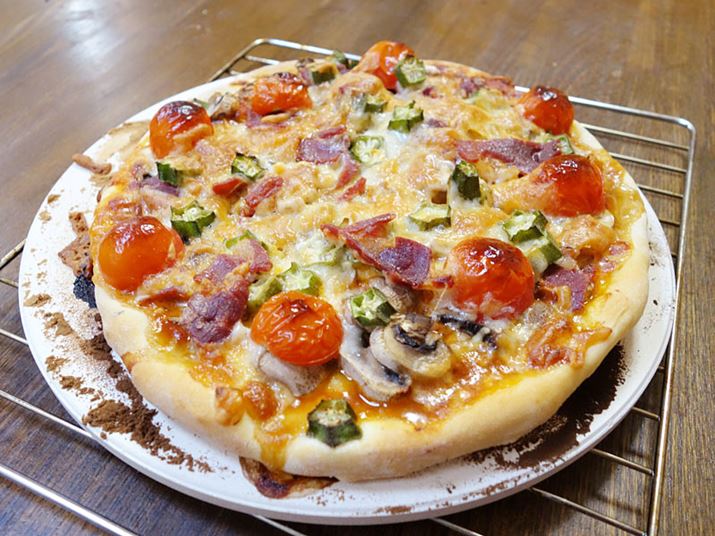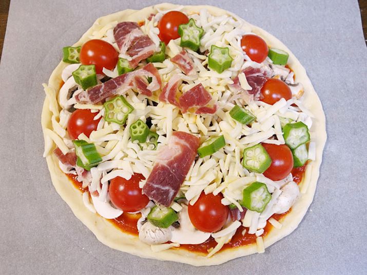 付属の説明書に掲載されているピザ生地のレシピはシンプルで作りやすい。自家製ピザは野菜など好きなものを入れられるので、子供とトッピングを考えながら作れるのも◎