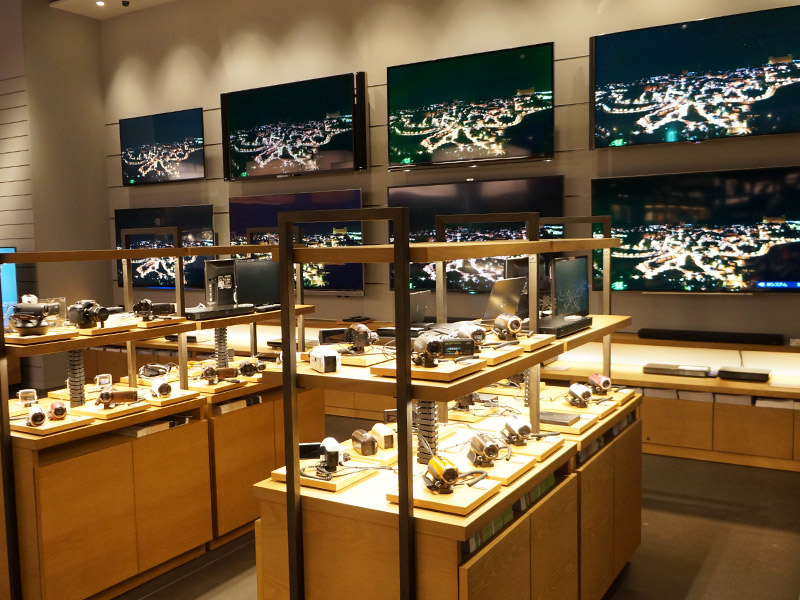 ハードからソフトまで。映像を楽しむための製品を扱うエリア。取り扱っているテレビは4Kのみで、最新の映像テクノロジーを間近で体感できる。ここでは、「カーブドTV」や「4K短焦点プロジェクター」の映像を体験してほしい。