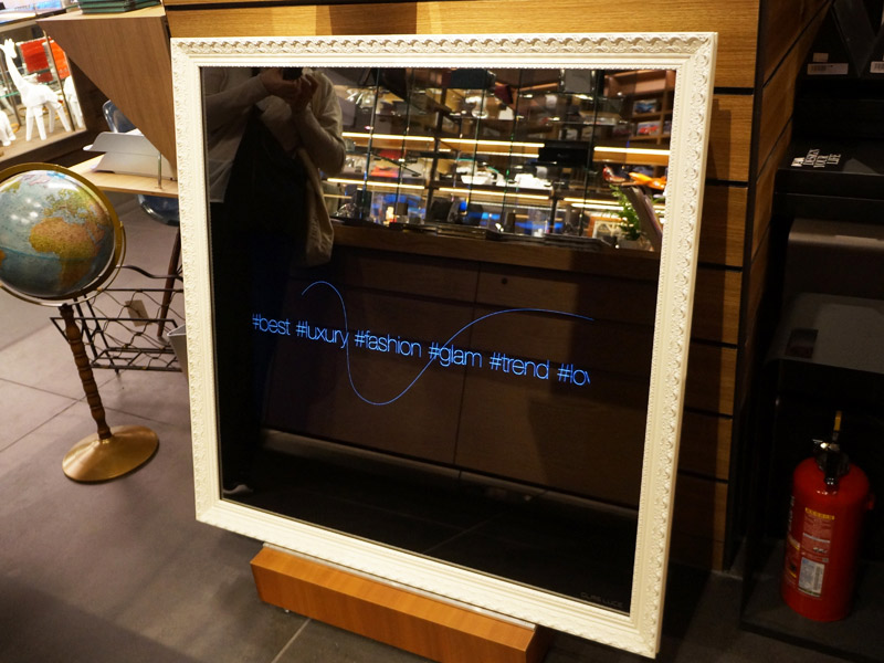 「グラスルーチェ」。インテリア感覚で設置できるガラス製ディスプレイ。実店舗での販売は現在のところ蔦屋家電のみとなっており、価格は写真左のモデル(製品サイズ1m×1m)で40万円前後。「グラスルーチェ」は店内のいたる所で使用されていた