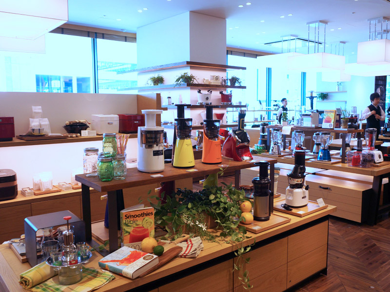 調理家電を中心に扱うエリア。製品は性能だけでなくデザインにもこだわってセレクトしているせいか、一般的な家電量販店に比べ、外資系メーカーの割合が高い印象。製品の実演スペースも用意されている。