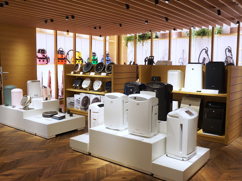 つづいて、家族の団欒をコンセプトに「衣・食・住」を提案するという2Fフロアをチェックしよう。こちらは、調理家電や掃除機、エアコンといった生活家電を中心に販売。家電製品の近くで関連する書籍や雑貨を展示する導線は、1Fエリアと同様だ。