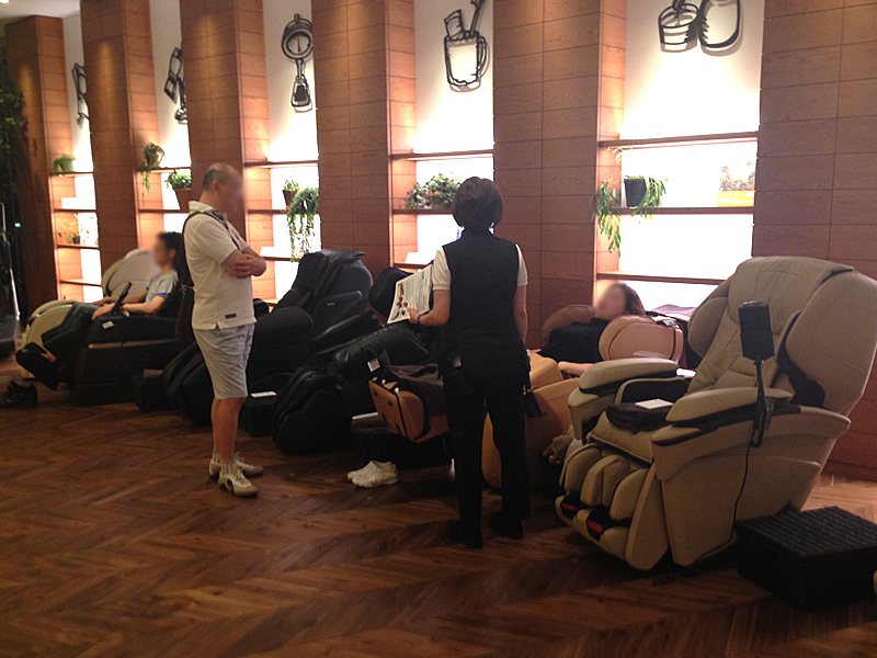 マッサージチェアの体験ブースは、エリア奥の人通りが少ない場所に広いスペースをとり、ゆっくりと試用できる配慮も