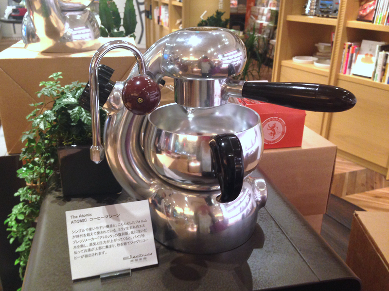 アトミックのコーヒーメーカー。「食」エリアで見ておきたいのは、家電でないにも関わらず「蔦屋家電」のイメージビジュアルにも起用されているアトミックのコーヒーメーカー。イタリア職人のハンドメイドで、そのデザイン性の高さは世界的にも認められており、ロンドンのデザインミュージアムにも展示されているという。現時点では参考展示で、販売時の予想価格は8万円前後