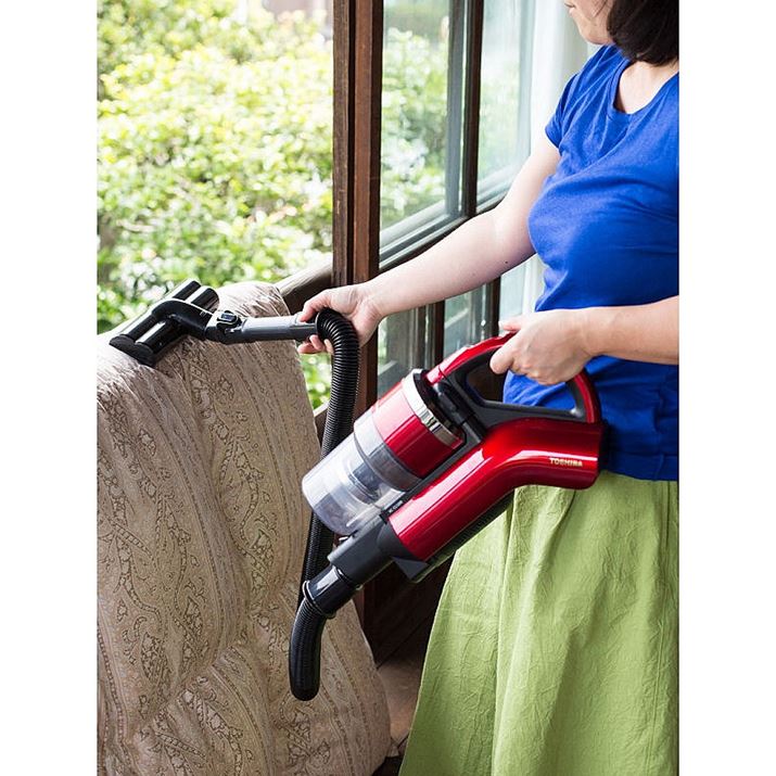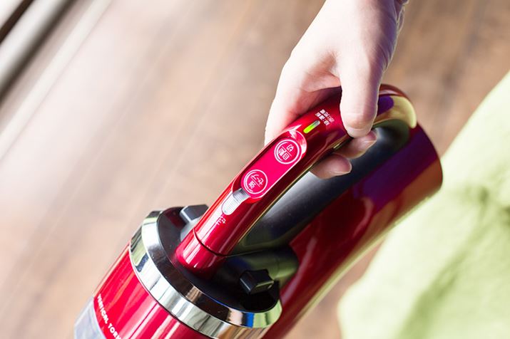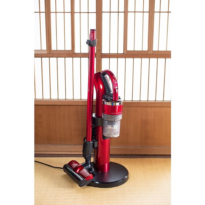 落ち着いたグランレッドの掃除機は、部屋の隅に置いても違和感がなく、部屋に溶け込みます。すぐ手に取れる場所にあるというのが、お掃除好きになる秘訣かもしれません。