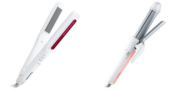 左が今回使用した「滑らせるタイプ」、基本的には髪を挟むヘアアイロンと同形状です。一方、「巻き付ける」タイプは昔ながらの「コテ」の形状(写真はEH-HT55)。棒状の加熱部にクリップがついた形です