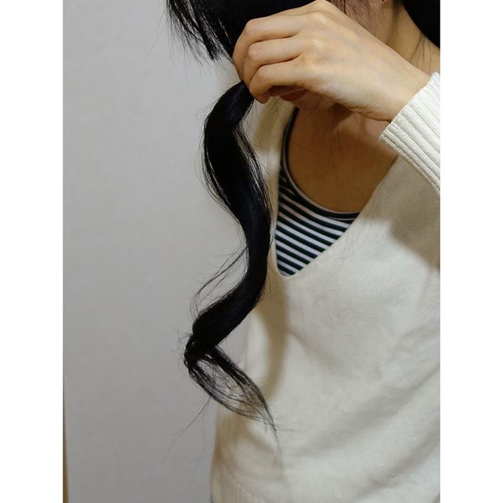 なんとか一番太い「カール38」での巻き髪が成功。できたカールは、根元を持って上下にビヨンビヨンと動かすと、くっきりとしたカールに仕上がるらしい