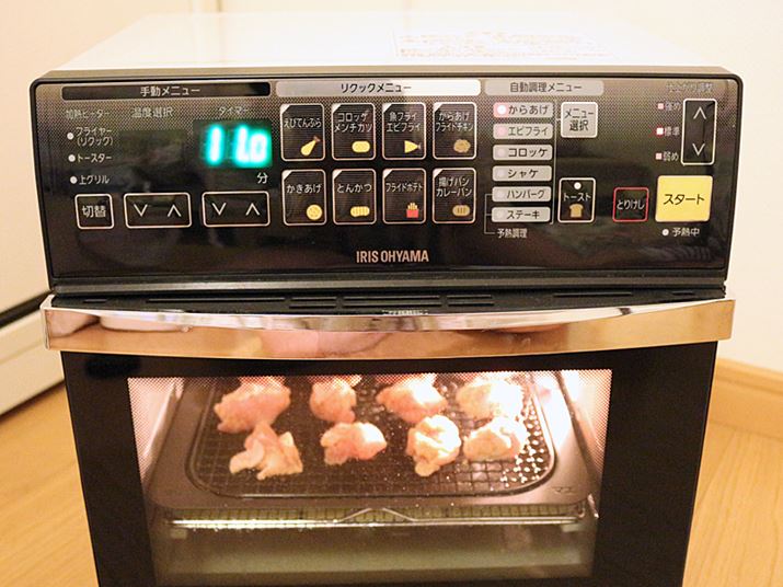 まずは、ノンオイル調理の定番からあげを作ってみる。操作法は「リクックメニュー」と同じ。