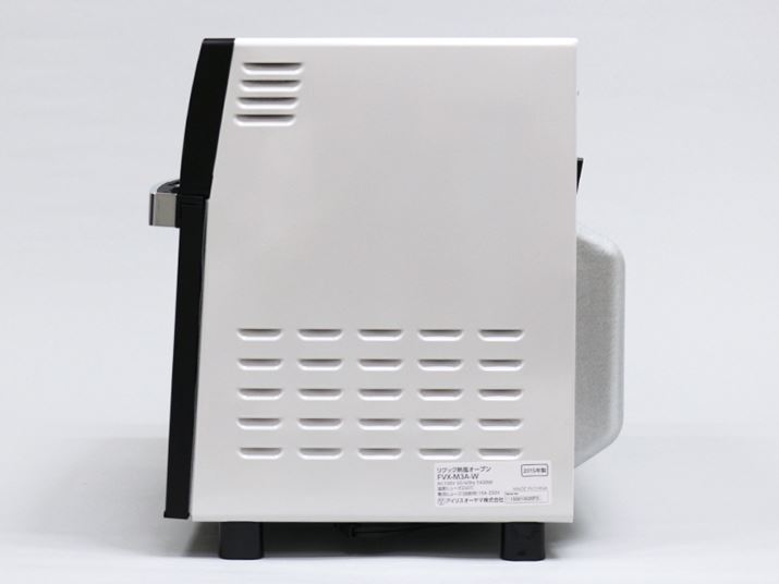 高さはあるものの、幅や奥行きは一般的なオーブントースターと同様のサイズ感だ。消費電力は、「フライヤー(リクック)」:1,350W、「トースター」:1,300W、「上グリル」:800Wとなっている