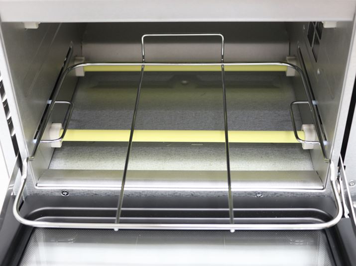 上下4本の石英管ヒーターで加熱する機能。トースター機能でまず気になるのが、食パンをおいしくトーストできるのかということ。使用頻度の高いトーストは、自動メニューとして専用ボタンが用意されている。4枚まで同時に焼けるが、ムラなく焼けるのだろうか。