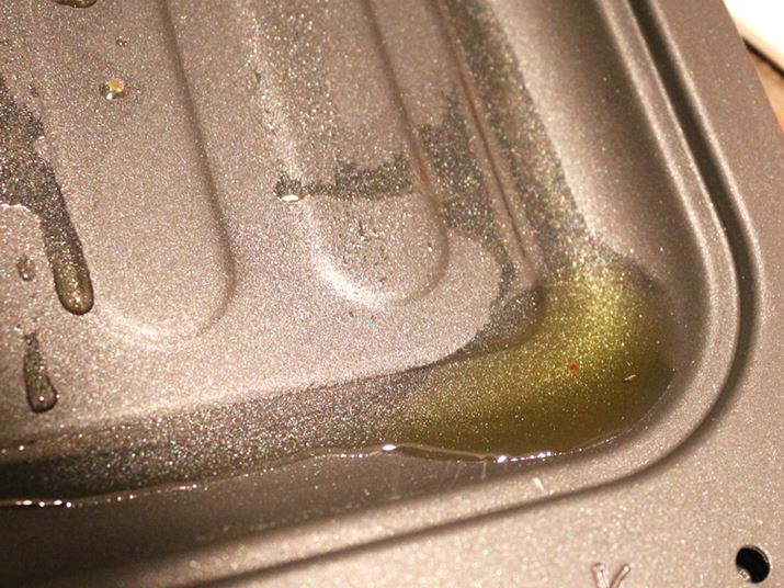 使用後の「フライ用受け皿」には、大さじ1杯弱の油が! カロリーに換算すると、約100kcalもカットできたことになる