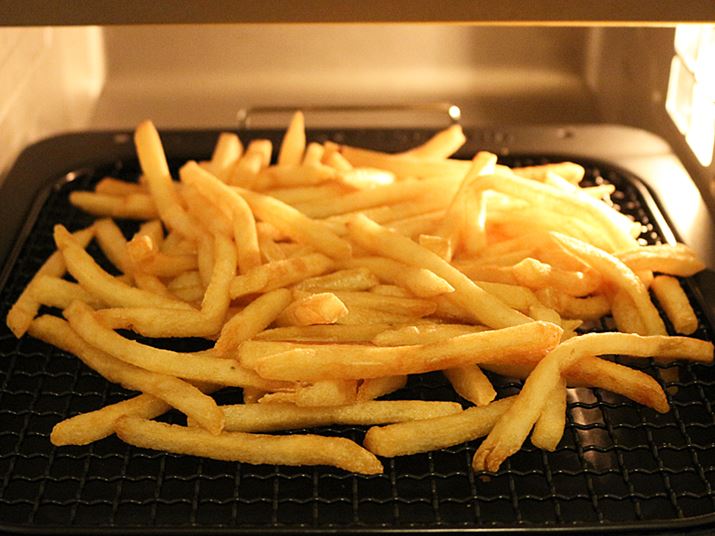 筆者の大好物のフライドポテトも試してみた。テイクアウトしたフライドポテトがシナシナになってしまうのは仕方がないとあきらめていたが、さくさく感を復活させられるなら、こんなにうれしいことはない。