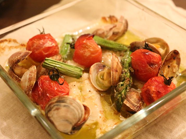 短時間の加熱でも、スープには魚介の旨みがしっかりと出ていた。オーブン料理は簡単で見栄えがするものが多いので、おもてなし料理にも最適だ