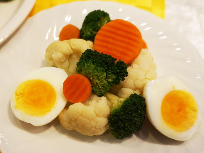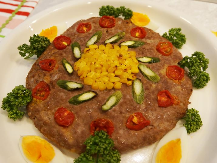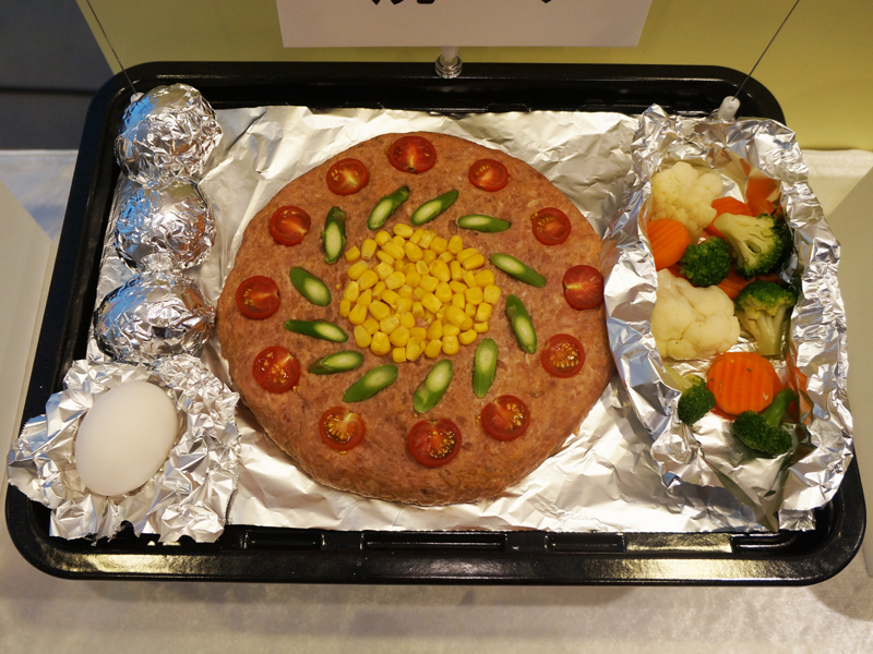 過熱水蒸気だけで調理するから、アルミホイルが使えるのも「ヘルシオ」の魅力。ハンバーグを焼き上げるのと同時に、ゆで卵と蒸し野菜もできる。