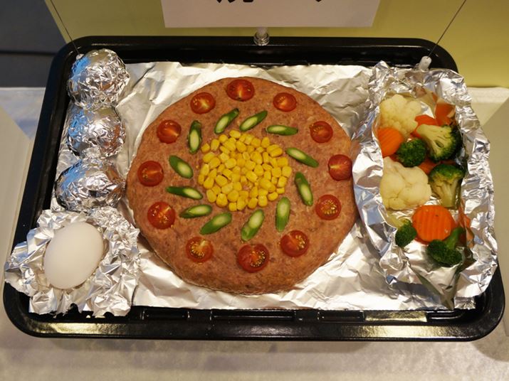 家にある食材を好きな分量でセットして「まかせて調理」すれば、写真のような料理が完成する。冷凍と常温の食材を一緒に並べてもOK。一度に作れるヒミツは、ページ下でくわしく紹介!