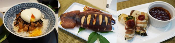 焼きとり丼、いかの姿焼きは8分で完成。野菜の肉巻きは10分で焼き上がる