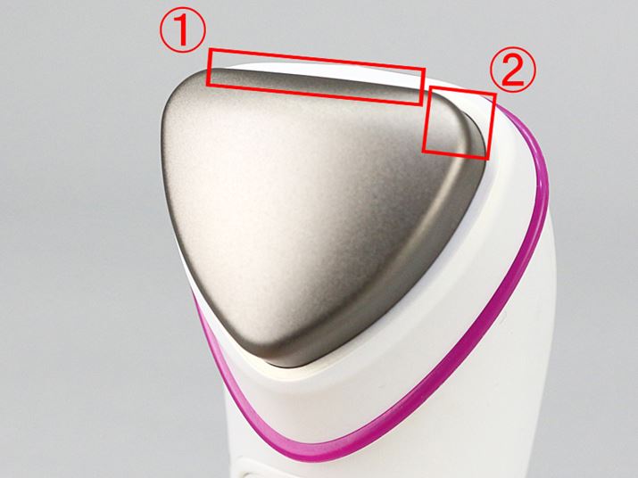 導入美容器というと丸型のヘッドが一般的ですが、EH-ST51には三角のヘッドを採用しているのが特徴。三角のヘッドは丸型に比べ、肌の引き上げや、目元や小鼻といった細かいパーツのケアもしやすいそうです。