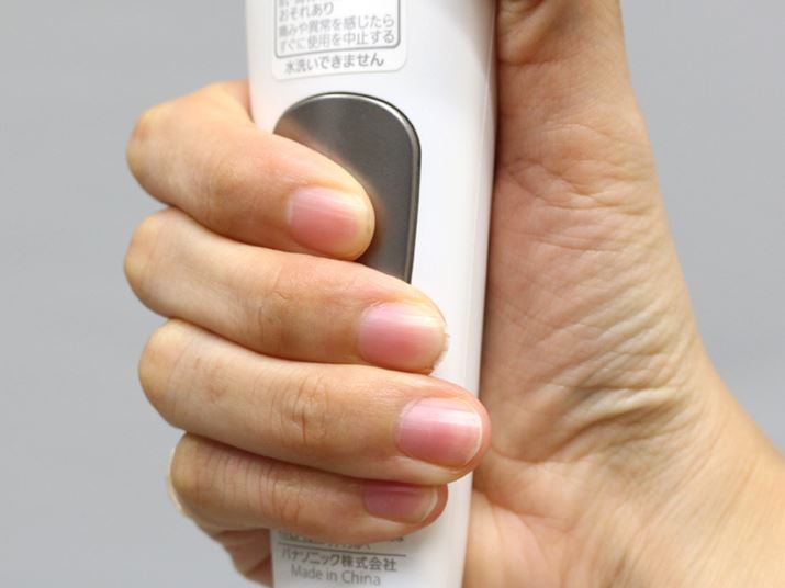 本体背面のイオンパネルにしっかり触れるように本体を握ってヘッドを肌に当てると、ヘッドが振動します。ヘッドが振動しないとスキンケアの効果が得られないので注意