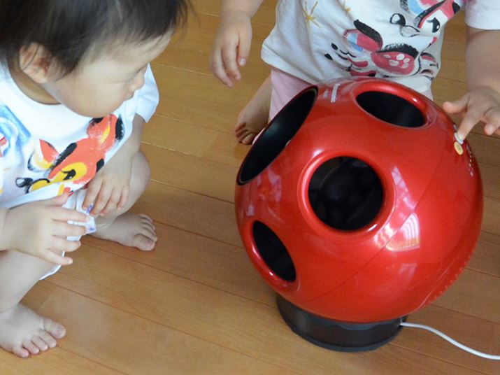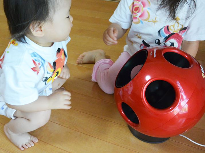 居間に置いておいたら、姪っ子たちが「Q」に大接近! 子供の表情を見てもらえばわかるように、風が心地いいようだ。長時間、「Q」の前で過ごしていた