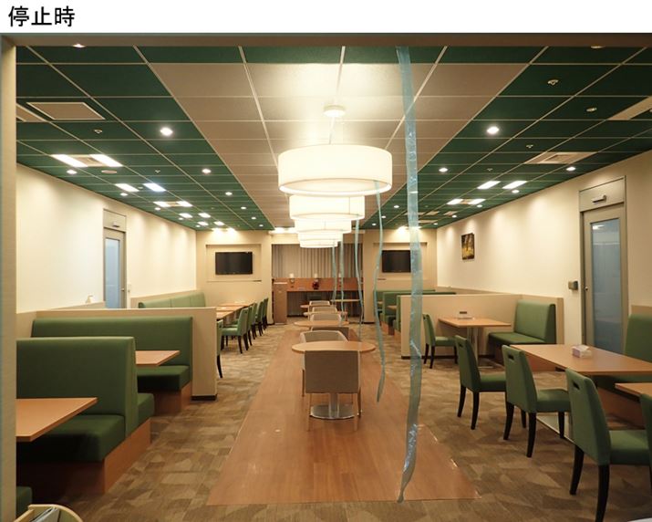 上で検証した6畳の部屋では、「Q」から一番離れた位置でも風量「2」で“風がきている”と体感することができた。では、もっと大きな空間ではどうだろうか? 会社の一室を利用し、風の届く範囲を調査してみた。ビニールテープは「Q」の吹出口より、1本目約6m、2本目約8m、3本目約10m、4本目約12m、5本目約14m、6本目約16m離れた位置に配置。そして、筆者は吹出口から約19mの所でウォッチした。