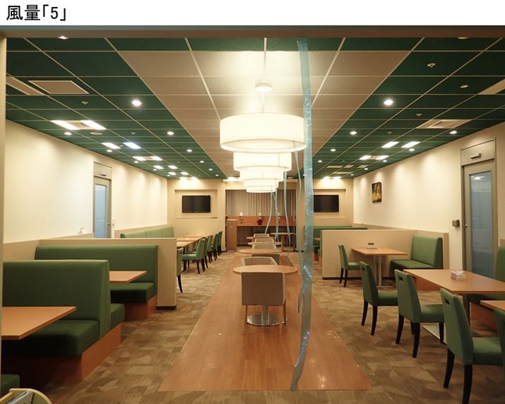風量「1」ではテープ1本がかすかに揺らぐ程度