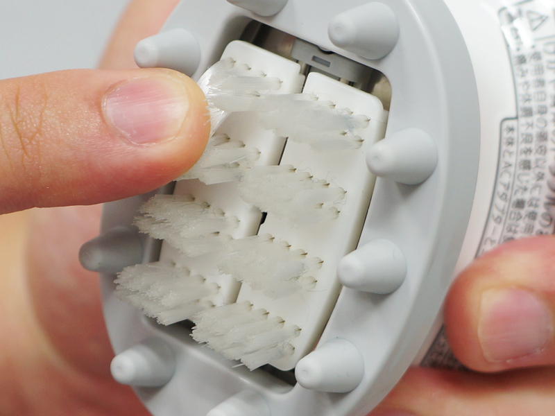 極細の毛ブラシが頭皮に対して平行に動く。指でゴシゴシと洗う動きの高速版といった感じだ。この速さは、とても人にはマネできない。適度な刺激を受けつつ、細やかに洗えそう