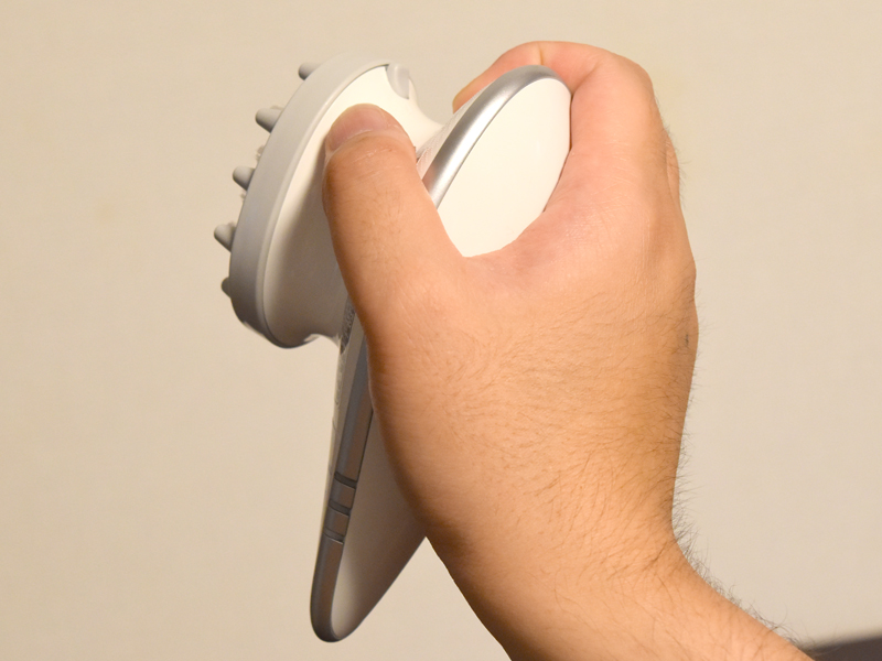 アーチに指を通して使用するため、フィット感がいい。重量は「音波頭皮ブラシ」より90g重い約295gだが、負担には感じなかった