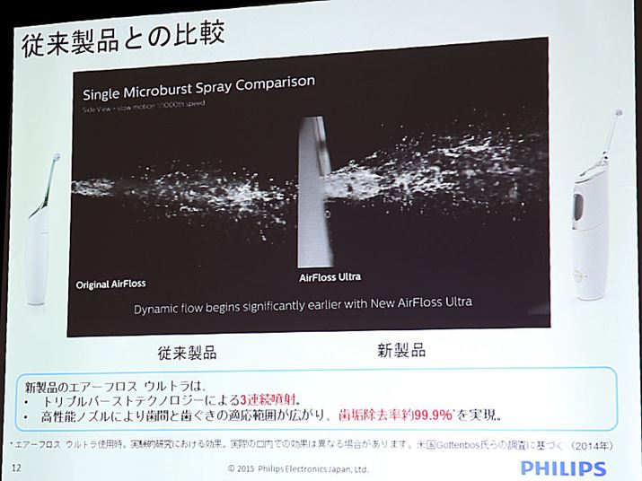 そこに目をつけたのがフィリップス。不満の多い歯間ブラシやデンタルフロスに代わる電動製品「ソニッケアー エアーフロス」シリーズを、2012年から開発。“水を噴射して歯間の汚れを取り除く”という斬新なスタイルと高い効果がオーラルケア意識の高い層に受け入れられ、新たな市場拡大に貢献した。そして、今回発表されたシリーズ3代目となるソニッケアー エアーフロス ウルトラにより、さらなる“歯間ケアの習慣化”を促していきたいとする同社。はたしでどのような進化を遂げたのか? その機能や使い勝手をチェックしてきた。