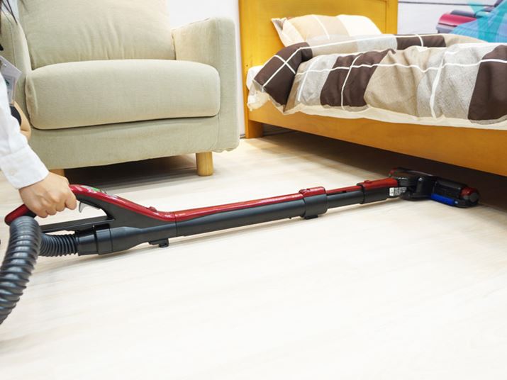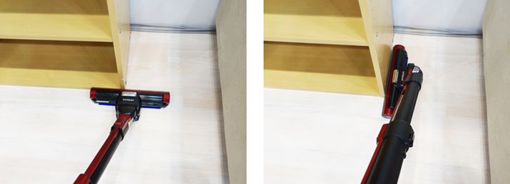 ヘッドが左右90度に曲がるようになっており、家具のすき間の掃除に重宝する。また、パイプを床にくっつけてもヘッドが浮かない構造になっているので、ベッド下などの掃除もしやすい。