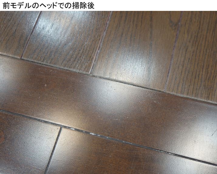従来ヘッドは2往復、新ヘッドは1往復でキレイになった。ゴミの取れる様子を見ていると、新ヘッドは中心部だけでなくヘッドの幅いっぱいまで均等に吸じんできているようだ。