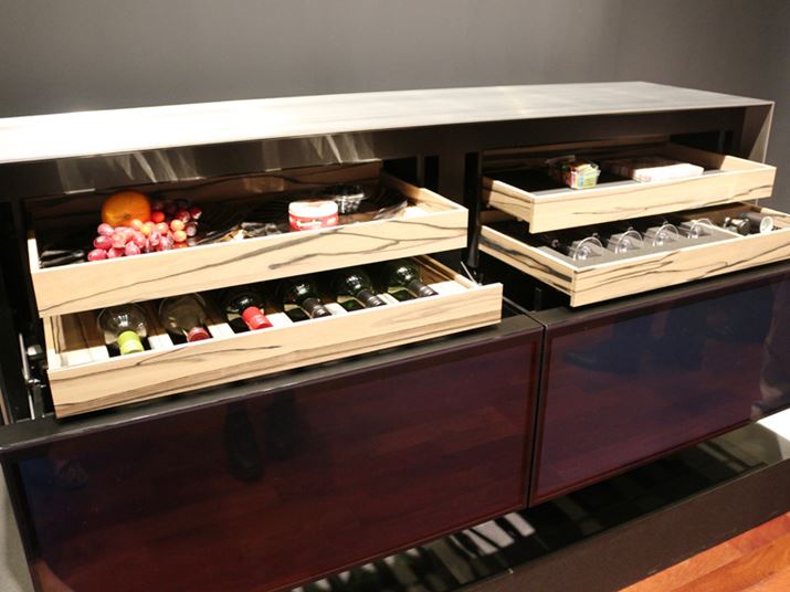正面に大型モニターを4枚配した横長型で、リビングのインテリアに調和しやすい「タイプ3」も。ボトルを横にして保管することができるワインセラー式で、こちらは2016年発売予定