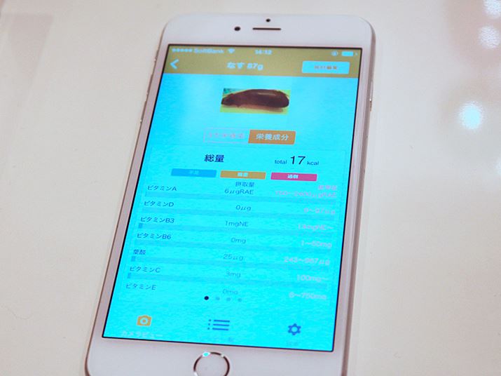 「この食材にはどんな栄養があるの?」気になったらその場でチェック! 「カル」は、カメラ付きハンディ栄養成分測定機だ。食材を本体に乗せると、内蔵されたセンサーが食材の重量を測定し、同時にカメラが食材を認識。専用アプリをダウンロードしたスマートフォンやパソコンで、食材の栄養成分やカロリーなどを確認することができる。また、一度認識した食材の情報をアプリが学習する機能も搭載し、データを蓄積、登録することも可能。2015年内の発売を予定しているという。