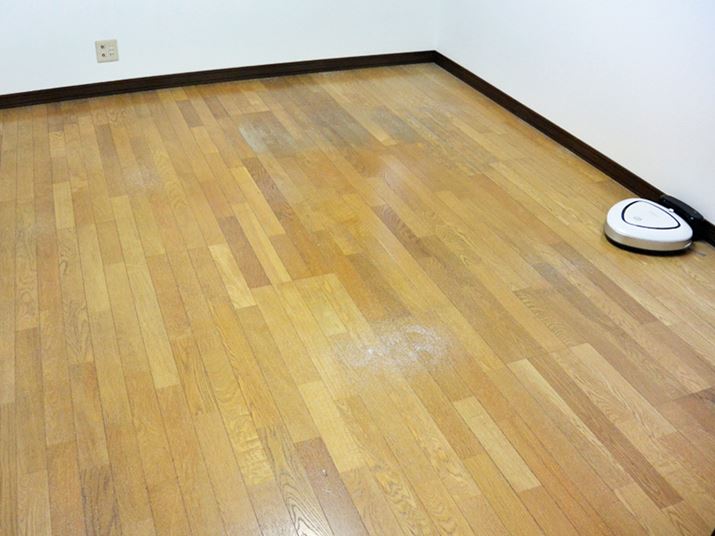 コーナーだけでなく、普通の床の部分(部屋の中心部)に大量に撒いたゴミもキレイに回収されていた。フローリングの目にもゴミは残っていない