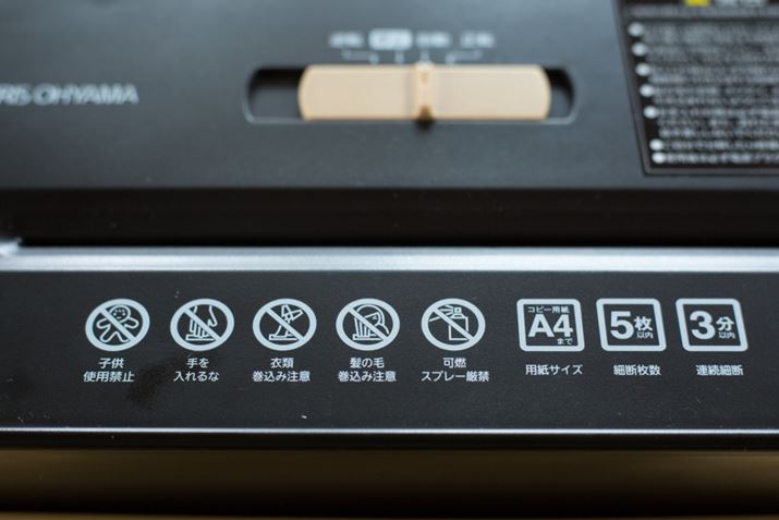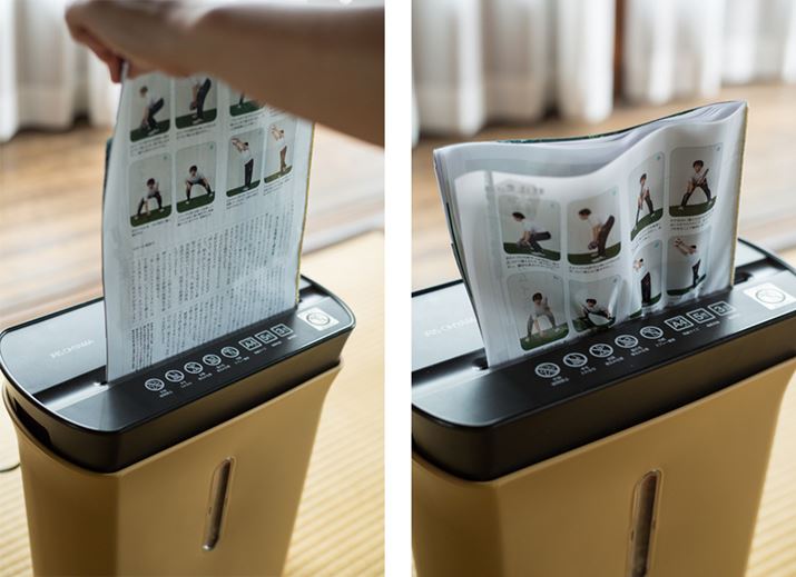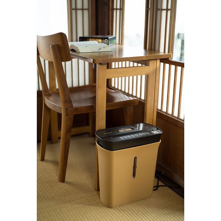 シュレッダーというと、これまではオフィスで使うものというイメージがありましたが、来年からスタートする「マイナンバー制度」の影響で、一般家庭においても需要が高まっています。家庭用となると、使いやすさだけではなく、まわりの家具との調和や音なども気になるところ。その点、「P5GC」は和室や木製家具にもマッチするベージュカラーがあるので、人気を集めそう。また、作動音もこの程度であれば、夜間でも使用できそうです。