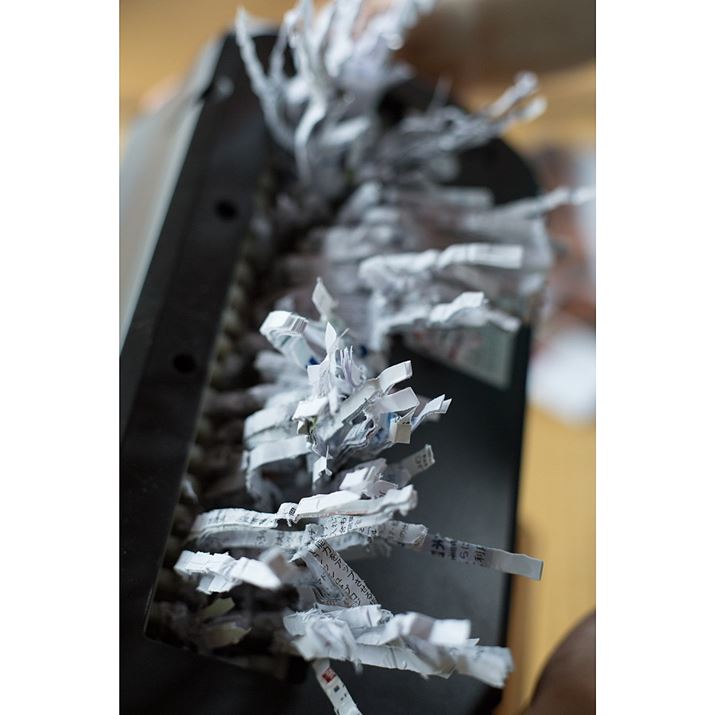 裁断された紙はこんな感じ。ここまで細かく裁断されていたら、ヒミツの文書も再現は不可?