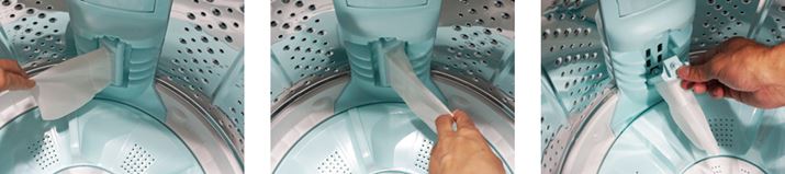洗い・すすぎ時の洗濯槽と外槽の間にある水と、脱水時の遠心力により洗濯槽裏側に付着する洗剤カスを洗い流す“お掃除機能”を搭載。洗濯槽の黒カビ抑制に役立つ。キレイな洗浄のためには、槽の清潔さも大切だ。