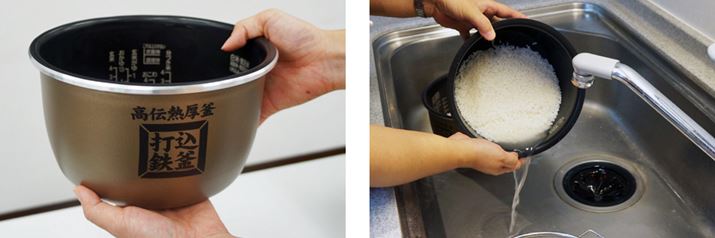 実際に洗米してみたが、720gの内釜は米と水が入ってもあきらかに軽い。これなら、毎日の作業も苦になりにくいだろう
