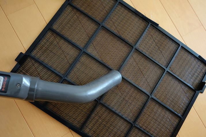 メンテナンスは、1か月に1回使い捨てフィルターを新しいものに入れ替え、プレフィルターに掃除機をかける。製品正面のフタを開けて、フィルターをポンポンと入れるだけなのでメンテナンスもラク。また、薄いプレフィルターは最初から12枚同梱されている