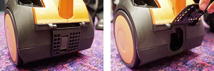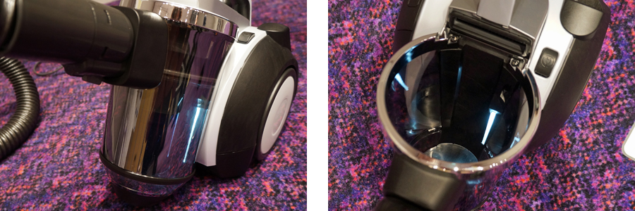 サイクロンボックスの取り出しは、ボタンを押して上に引くだけ。カバーなどが装着されていないので、取り外しがスムーズ