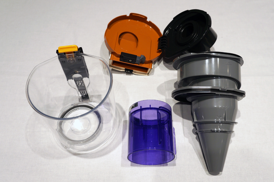 サイクロン部まで細かく分解でき、水洗い可能。パーツが大きめなので、洗いやすい
