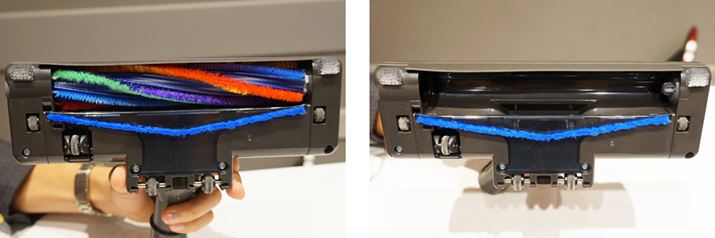 「TC-ZXE30P」は回転ブラシをスライドすると、糸がヘッドのほうに残留。取れた糸はゴミ箱に捨ててもよし、掃除機で吸ってもよし!