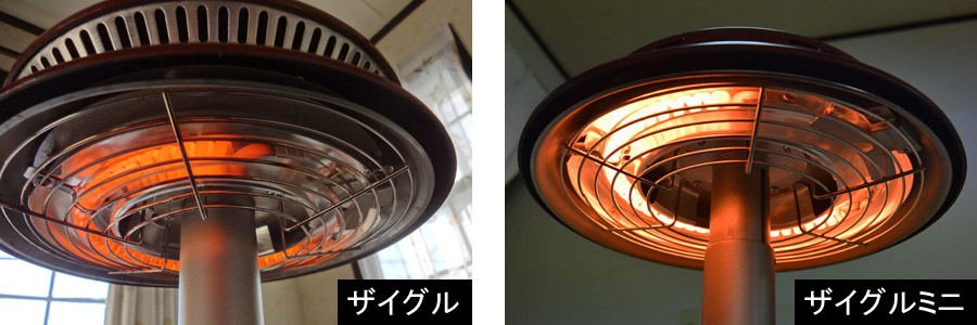 ヒーターの出力の切り替えはどちらも5段階だが、定格出力が「ザイグル」のほうが100W高い、1,200Wとなっている