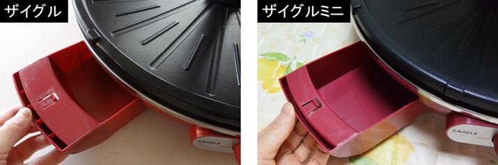 大きな違いは、プレートの取り外し方。「ザイグル」はプレートの一部を外して全体を抜き取る仕様となっているが、「ザイグルミニ」のほうは2分割できる
